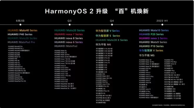 2021年6月2日,HarmonyOS 2及华为全场景新品发布会圆满落幕,备受期待的HarmonyOS 2如期而至。在发布会的压轴环节,华为消费者BG CEO余承东公布了HarmonyOS 2适配升级计划,覆盖华为手机、平板和智慧屏等超百款设备,这是华为有史以来规模最大的升级计划。