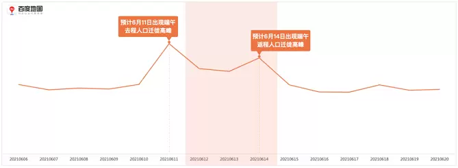 (百度地图-2021年端午假期全国人口迁徙趋势预测图)