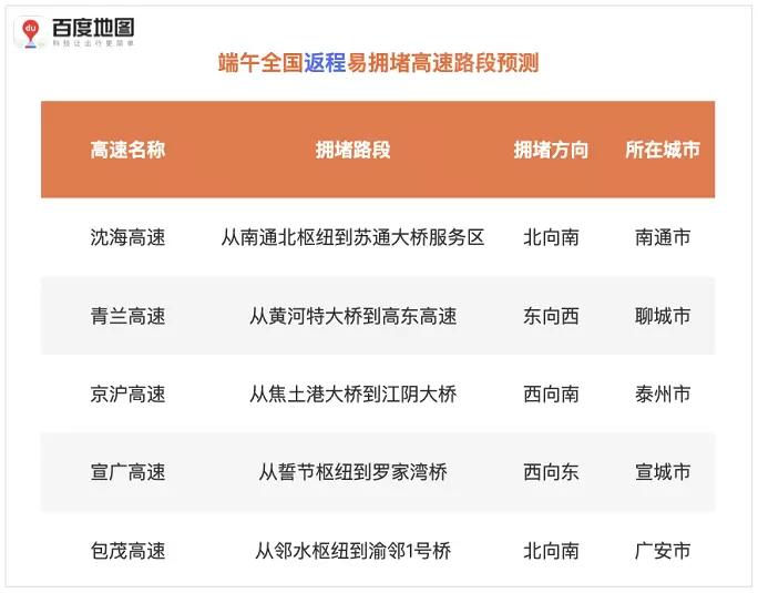 百度地图发布端午出行预测:6月11日将提前迎来全国高速拥堵高峰