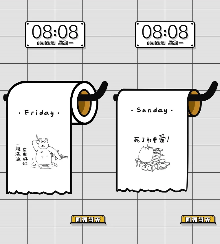 Tango与华为主题创意工作室合作打造的幽默趣味主题之“卷纸周历”