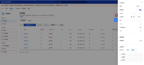 在ZStack-UI 正式发布版本中,总共有 1800 多个受控的页面元素,叠加5种 license 和11个系统角色,总共最多会有接近 10 万个配置项,如果算上 OEM 定制版,数量只会更多。如果没有低代码开发平台,前端的工作量将是非常恐怖的,系统也处于不可测试的境地。为了方便产品和测试人员进行配置,我们创造性的在 UI 中引入了 Debug 模式,当开启时,UI 中所有的受控元素都会进行标注,鼠标悬浮上去就可以跳转到配置系统进行配置,如下图所示: