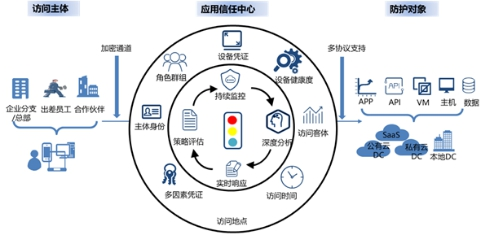传统的安全防护基于网络边界构建,但随着云计算和移动互联网的兴起,传统网络边界逐渐模糊,基于网络边界的防御理念难以适应云环境下的需求。零信任“从不信任、永远验证”的理念应势而起,即基于身份而非网络位置来构建访问控制体系。