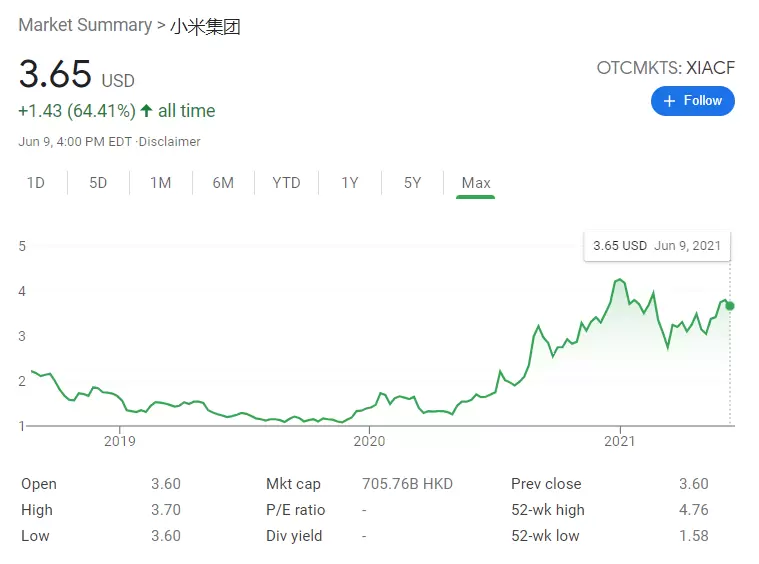 但是6月7日,股市开盘后,小米集团的股价直线下挫,一度跌超5%,截至收盘,小米集团跌4%,市值一夜之间蒸发了300亿港币!