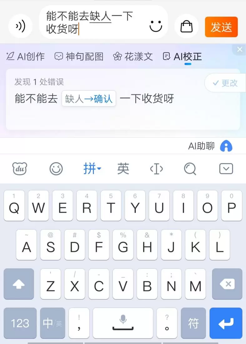 最后,百度输入法AI助聊的智能预测能够结合不同输入场景,在只输入几个字的前提下智能补全完整句子。如:在购物场景与客服对话时输入“能不能”,智能预测功能将补全为“能不能帮我改一下地址”等语句供用户选择,达到事半功倍的输入效果。