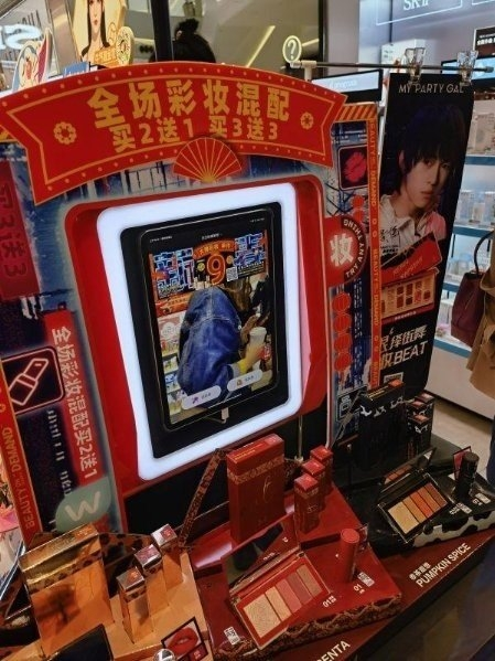 屈臣氏门店内的美图魔镜虚拟试妆系统