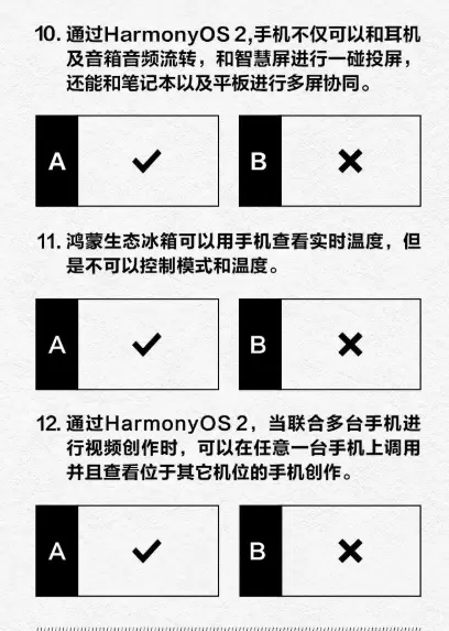 例如,判断题:通过HarmonyOS 2,手机不仅可以和耳机及音箱音频流转,和智慧屏进行一碰投屏,还能和笔记本以及平板进行多屏协同。