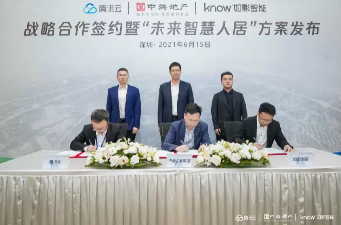 6月15日,北京如影智能科技有限公司(以下简称“如影智能”)与腾讯云计算(北京)有限责任公司(以下简称“腾讯云”)与中海企业发展集团有限公司(以下简称“中海地产”),在深圳共同签署三方战略合作协议,同时发布了未来智慧人居联合解决方案,并宣布成立未来智慧人居联合实验室。