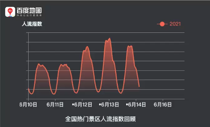 在出游方面,据百度地图大数据显示,全国景区人流指数的最高峰出现在6月13日15:30左右。与五一黄金周的长线游热潮相比,端午假期以中、短途游为主,其中西湖、千岛湖、五台山风景名胜区、泰山等景区备受欢迎。