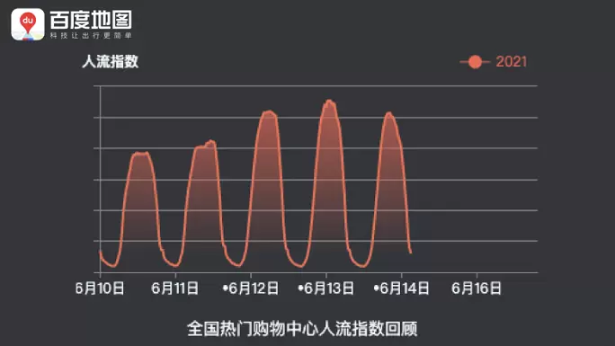此外,假期也有力地激发了各地消费者的购物热情,全国热门购物中心人流指数在 6月13日15:30左右达到峰值。北京荟聚购物中心、上海环球港、上海日月光中心等购物中心的热度较高。