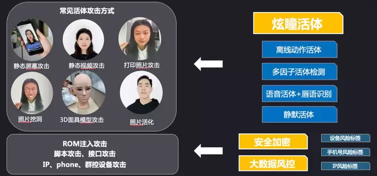 人工智能视觉技术迭代发展,“刷脸”场景日益普及,在金融支付、医疗政务、保险理财等等领域广泛应用开来。而新技术带来便利的同时,也需要更加关注安全保障。因此,在人脸识别应用中,更安全的活体检测技术、从设备环境层面进行风险监测,以及在人脸身份信息核验全流程确保用户是“真人”且是“本人”,至关重要。