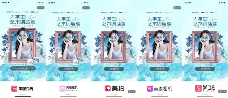 活动整合美图秀秀、美颜相机、美妆相机、美拍、潮自拍五大APP开屏,用站内顶级曝光资源全方位覆盖平台用户。并长线聚焦美图秀秀、美颜相机核心资源,在首页、个人页、搜索页预埋多个跳转路径,持续引流活动,为有效触达年轻群体提供流量支持。