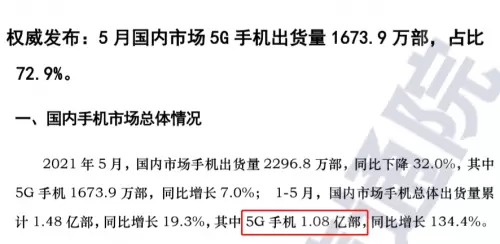 6月16日,中国信通院发布最新统计数据,今年前5个月,国内市场5G手机出货量达到1.08亿部。加上2019年、2020年的数据,国内5G手机出货量已累计超过2.8亿部。网络建设方面,我国也已经建成了全球最大的5G商用网络。自2019年6月6日5G牌照发放以来,中国5G建设在这两年里取得了非常显著的成就。