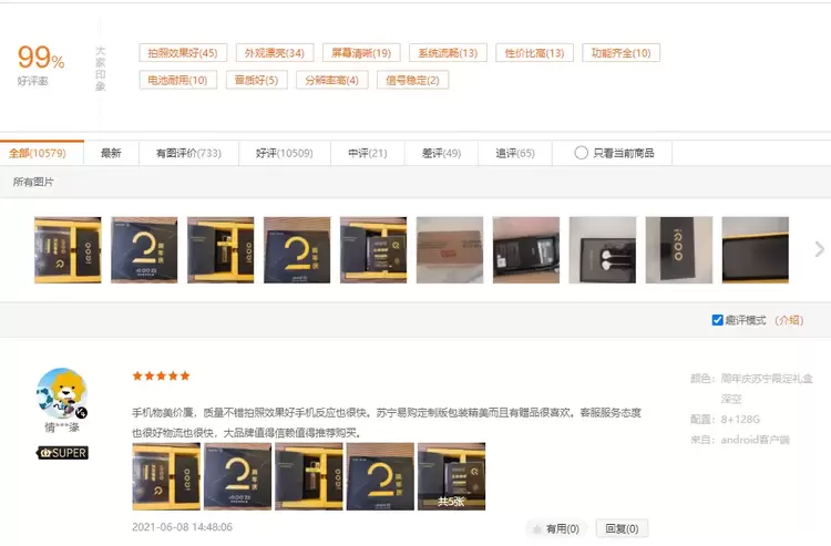消费者对iQOO手机的认可度有多么高,通过电商平台的用户评价就能感受到。在iQOO京东官方自营旗舰店中,iQOO Z3的用户评价早已达到了10万以上,并且好评率高达96%。在苏宁平台,这款手机的好评率更是达到了惊人的99%!而这也仅仅是iQOO旗下的一款机型,其他产品的好评率同样很高,这足以证明其受欢迎程度。
