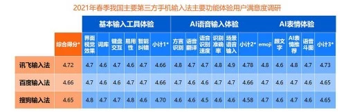 综合产品各方面的得分来看,讯飞输入法用户的综合满意度达到行业最高。