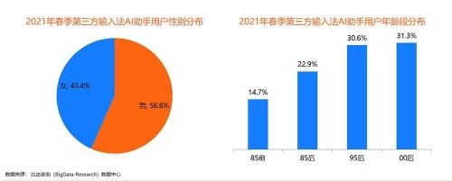 关于AI助手,报告显示,目前使用第三方输入法AI助手的用户男性多于女性,年龄分布方面,95后和00后用户占比超六成,达61.9%。从报告总结的三大输入法的AI领域中,讯飞输入法AI助手小蓝表现出色,功能包含打字推荐斗图、会聊匹配语境、快捷搜索、智能翻译、AI校对文字、精准天气预报/获取热点资讯,报告给予的评价是“为输入法智能化打下扎实基础”。