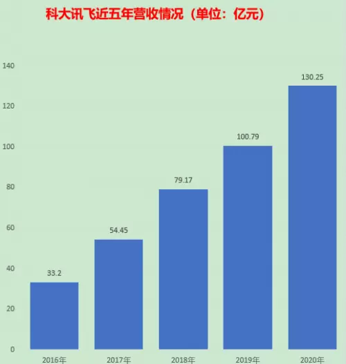 从2009年刚成立的年营收3亿元,到2020年的130亿,科大讯飞年均复合增长率近40%。