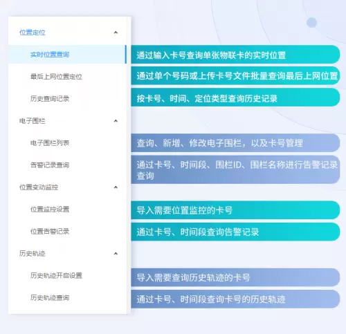 实时主动获取物联卡终端位置或非实时获取最后上网位置。
