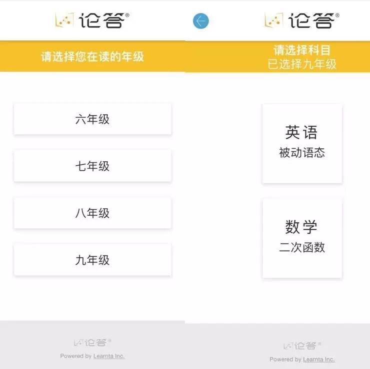 雷锋网试用了论答的智能测评系统,首先选择年级,然后选择英语或数学科目,系统会自动推送相关知识点的习题。