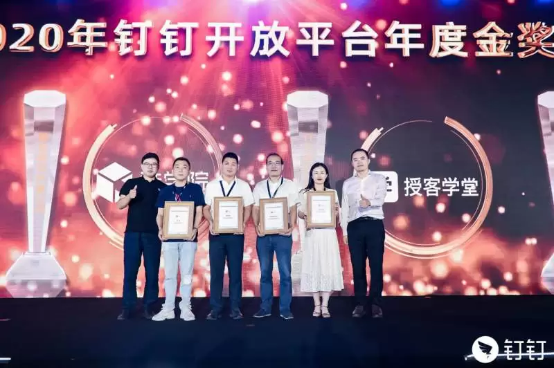 “授客学堂”获“2020年钉钉开放平台年度金奖”(右二)。