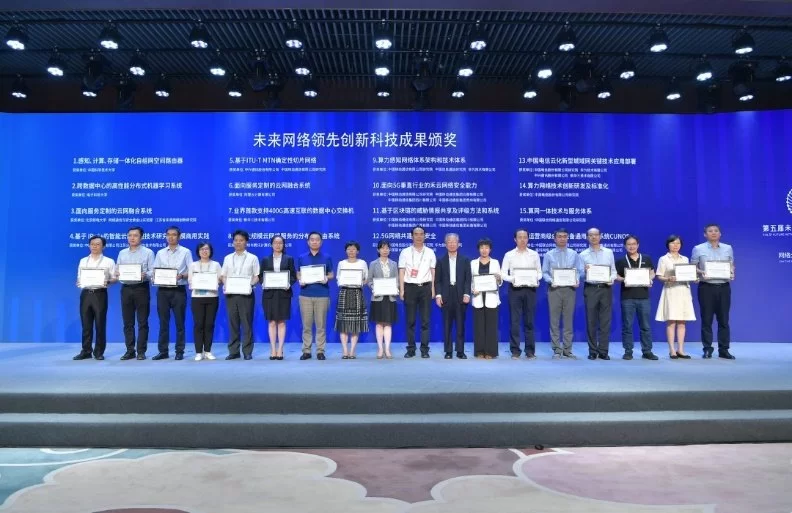 6月18日,全国未来网络领先技术成果发布仪式在第五届未来网络大会中同期举行。紫光股份旗下新华三集团自主研发的“400G数据中心交换机”凭借其领先的产品性能、前沿的技术架构、全面的功能特性以及丰富的行业应用实践,斩获“创新科技成果奖”殊荣,中国工程院院士刘韵洁为获奖单位颁奖。