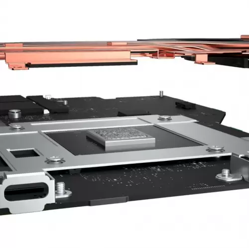 独家31号元素导热层为镓硅液金化合物,拥有更强的导热性与更低的流动性,可以与CPU形成更加稳定、更加紧凑的结构。独家镓硅液金化合物在体积较小的CPU核心上展现出了难以超越的优势。同时在独家镓硅液金化合物散热的基础上,外星人 x17游戏本还在CPU与4个铜复合热管之间加入了VC(Vapor Chamber)真空腔均热板,可将高温区域的热量以蒸汽的形式迅速、均匀、稳定地导出。