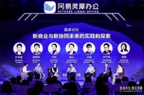 大会下午,网易灵犀办公产品相关负责人与经销商伙伴共同开展了以“新商业和新协同未来的实践和探索” 为主题的圆桌论坛。网易工作人员会中通过线上收集的方式整理了合作伙伴集中关心的一些问题、想法和建议,并特此邀请到网易灵犀事业部产品、技术、销售、解决方案、服务各个岗位的负责人来作出回应和解答。