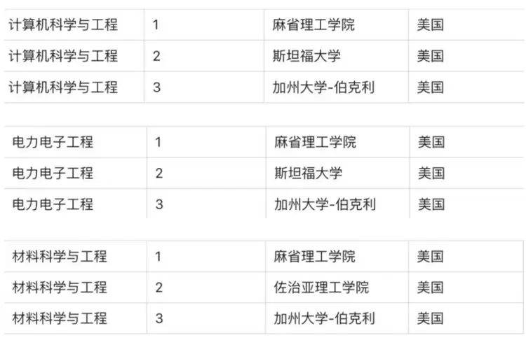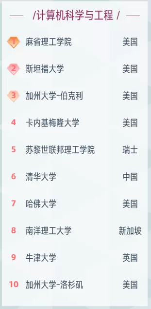 从上面的榜单来看,计算机科学与工程学科是一流院校的主要研究方向,我国的知名学府也是在计算机科学与工程学科榜单中位列前茅。