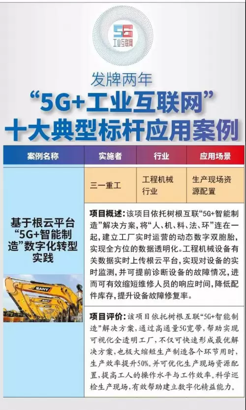 工业互联网作为5G应用落地的关键所在,正驱动5G融合应用不断提速,围绕5G工业互联网的应用案例不断涌现。近期,树根互联基于根云平台帮助三一重工打造的“5G+智能制造”数字化转型实践案例成功入选由“工业互联网世界”编辑部和《通信产业报》全媒体评选的《5G发牌两年-“5G+工业互联网”十大典型标杆应用案例》,尽显标杆成色。