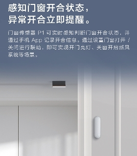 Aqara 门窗传感器 P1 不仅可以实时判断门窗开合状态,并且还可以通过手机App 记录门窗开合信息。同时还可以根据门窗开合状态联全屋智能,例如当门窗打开的时候,实现开门全屋亮灯。门窗关闭的时候,实现关门全屋关灯……