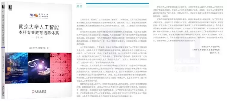 作为在AI领域探索多年,并且取得了丰硕成果的南京大学,AI教育带头人周志华曾经在19年发布过一本《南京大学人工智能本科专业教育培养体系》,这本书是南大在 AI 本科专业人才培养方面的初步探索成果,也是国内第一本关于 AI 本科专业教育培养体系的著作。