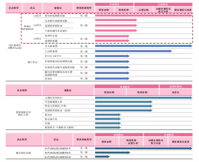 公司已开发出一条丰富的产品管线,包含其他SaMD及健康风险评估解决方案,不仅覆盖医院的临床科室,还可满足在社区诊所、体检中心、保险公司、视光中心及药房等场景的全人群用户对健康服务的各种需求。