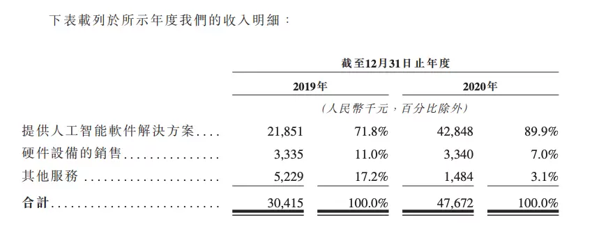 从招股书中可以看出,鹰瞳的主要收入来自于第一种,也就是软件,其提供人工智能软件解决方案在2020年的收入占比达89.9%,与2019年的71.8%相比增幅较大,这也意味着在2020年8月产品拿到三类证的获批后,鹰瞳的商业化进程进一步提速。