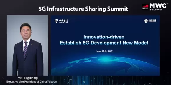 中国电信副总经理刘桂清发表了“创新驱动,开创5G发展新模式”的主题演讲,分享了5G共建共享的驱动力、创新成果,并倡议全球产业各方加强交流合作,不断开展共享网络、终端、业务等方面的持续创新与高效协同,正式提出将网络共享理念融入6G标准愿景中。