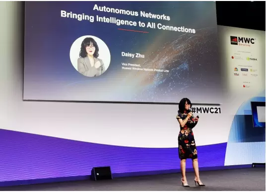 无线网络产品线营销副总裁朱慧敏在MWC智能自治网络论坛发言