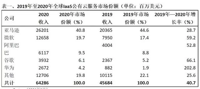 Gartner:2020全球IaaS公有云服务市场增长40.7% 华为首次进前五