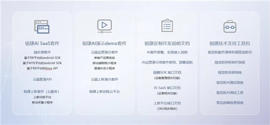 第四,超低准入门槛:将智能化硬件组件的性能要求降低到,仅需可同时采集2路标清视频即可,硬件成本大大降低。而且云平台提供边端多平台SDK、购物小程序、运营DEMO套件以及开发说明文档等,整体运营体验平台向客户开放,可以随时无门槛体验。