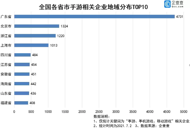 2021年上半年,我国新增手游相关企业236家