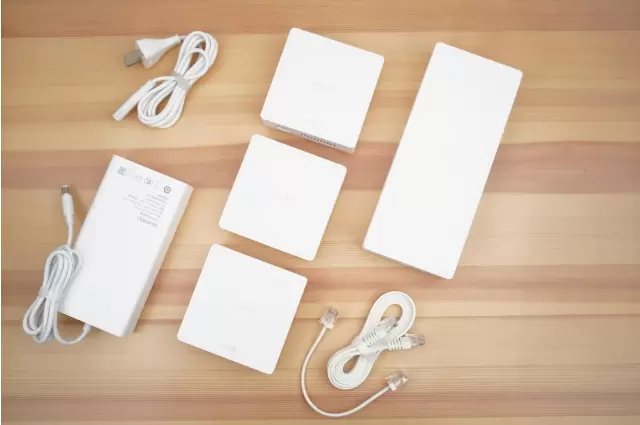 打开包装仔细观察一番后,最让人印象深刻的是简约的外观,华为路由H6外形不像一些路由的造型很夸张,四四方方盒子加上白色的机身,可以完美的搭配多种家庭的装修风格,而且子路由体积也不大,安装在插座上也不显得碍眼。