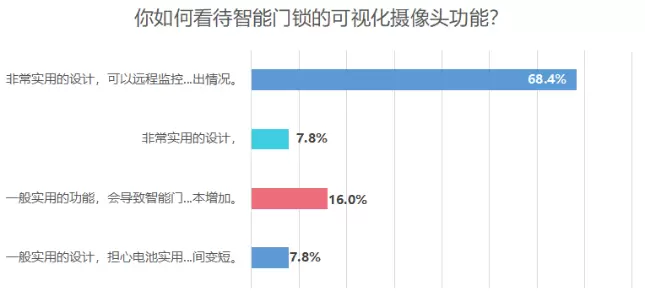 而据电脑报的一项调查数据显示,有68.4%的消费者认为带有摄像头功能的智能锁非常实用,认可其远程监控门外情况的功能。那么,飞利浦旗下的飞利浦可视智能锁DDL702正可以做到让用户对门外动态一目了然。