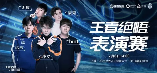 7月8日下午,王者绝悟展区将上演紧张刺激的“KPL人气选手组队vs王者绝悟表演赛”,重庆QGhappy.Hurt、成都AG超玩会.无痕、武汉eStarPro. 诺言、深圳DYG.小义,以及辰鬼将登上舞台,为观众呈现“AI+游戏”融合产生的奇妙化学反应。