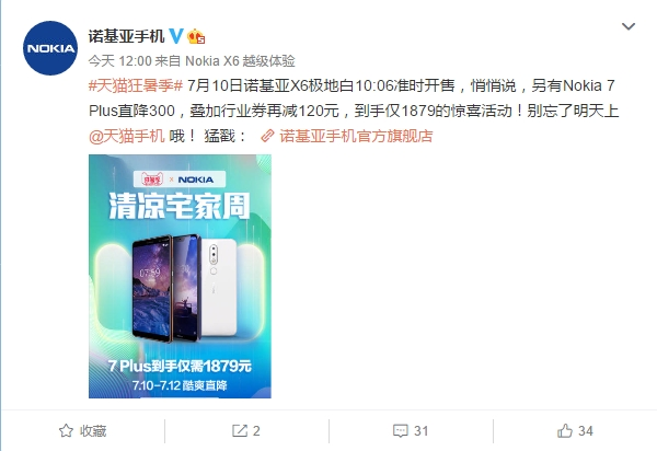 7月9日,诺基亚手机官方微博预告,诺基亚X6极地白将于7月10日上午10:06正式发售,售价1699元。