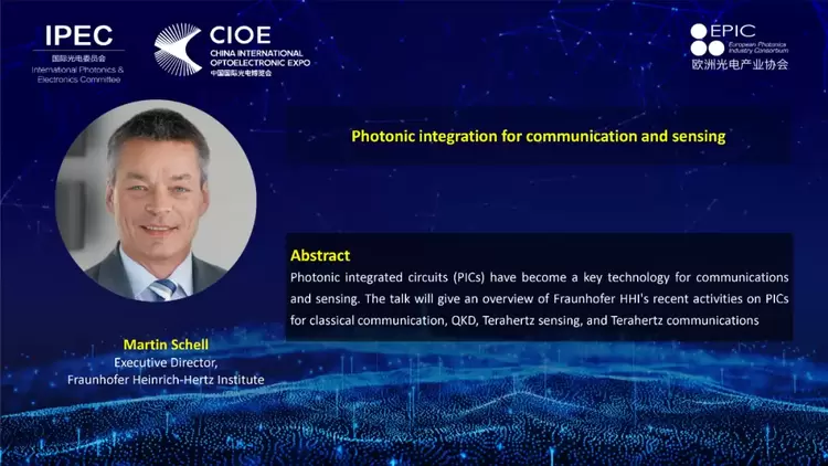 来自德国HHI实验室的Martin Schell教授分享了PICs(PhotonicIntegrated Circuits)在光通信以及传感领域的最新研究进展。Schell教授指出未来高波特率通讯场景,PIC具有架构简单、功耗更低的优势,同时未来在LiDAR和光计算以及量子通信等领域会有广阔的发展。此次IPEC全球光电子领域研讨峰会为产业上下游的光电技术专家提供了一个探讨窗口。众多技术专家分享了光电通信领域最新的技术研究进展和产业发展动态,同时也针对新兴光电技术应用领域进行了展望和探讨,为全球光电子产业持续繁荣的发展打造了一个开放和广阔的平台。展望未来,希望更多的光电领域公司和专家加入到IPEC标准组织来,共同为推动全球光电产业的持续健康发展。