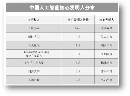 百度 CTO王海峰发明人团队的专利获得中国专利金奖可谓实至名归。根据知识产权出版社i智库2019年发布的《中国人工智专利价值及竞争力报告》,百度公司所拥有的AI 核心发明人数达到10人,排名第一。