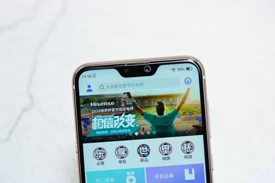 屏幕方面采用了一块5.84英寸的19:9刘海全面屏,屏幕四周的边缘均采用了大R角的处理,与手机圆润的外观遥相呼应。
