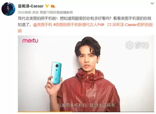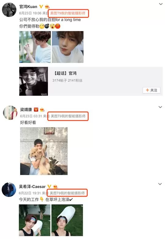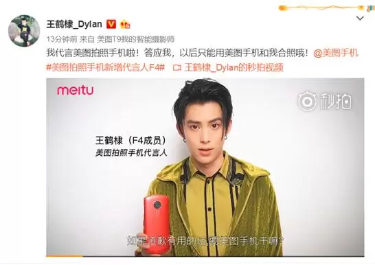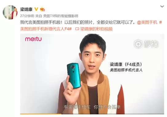 随后,王鹤棣、官鸿、梁靖康、吴希泽4人也分别在微博发声,公开新晋美图手机代言人的身份。