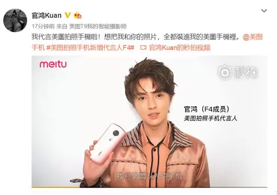 新F4是娱乐圈新起之秀,也是“颜值、实力、人气”兼具的花样新美男,他们身上的青春活力与自我突破,也与品牌美图手机的品牌理念、品牌调性十分相符。