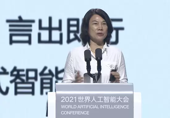 7月8日,格力董事长&总裁董明珠在2021世界人工智能大会上开幕式上智能化为制造业如虎添翼。