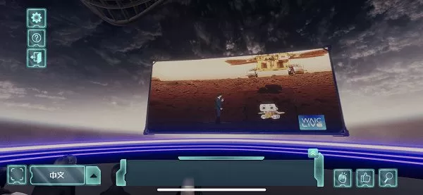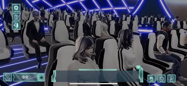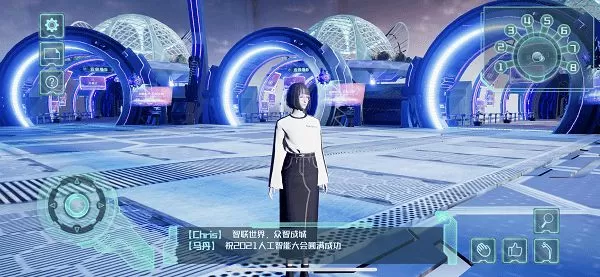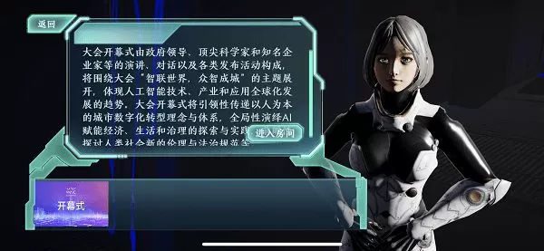 记者发现,完成注册登录进入云会场平台后,云观众可以定制自己的专属3D虚拟形象,不仅可以更换发型、脸型、身形、肤色,甚至还能挑选喜欢的服装和配饰。“换装”完毕后,应用程序会自动弹出功能介绍和操作指引。随后,云观众可以根据界面右上角显示的地图,操控摇杆移动人物选择进入充满未来科技感的会展现场。入座后,虚拟大屏幕自动同步播放开幕式画面,云观众可以通过双指触屏缩放屏幕,左右滑动查看会场场景。整个过程就像在玩游戏一般。