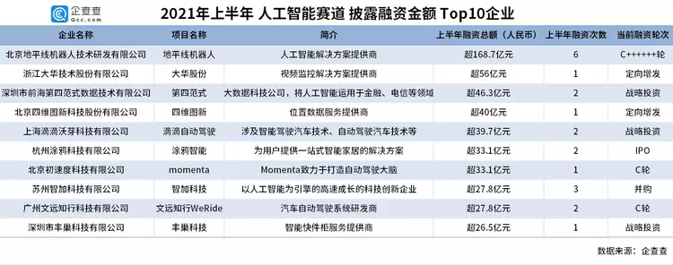 一、上半年人工智能赛道吸金近千亿元,其中自动驾驶项目备受资本青睐