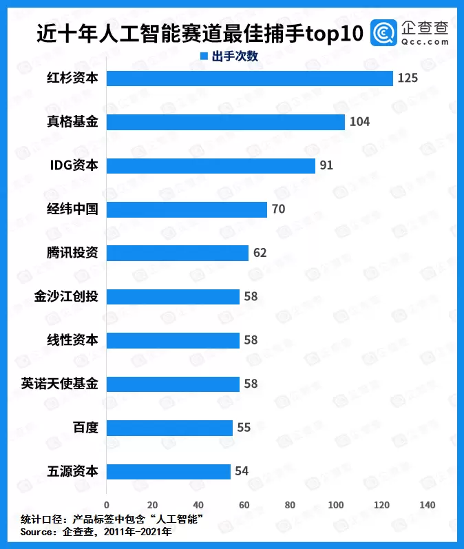 七、人工智能赛道最佳捕手“红杉资本”,腾讯仅位列第二梯队